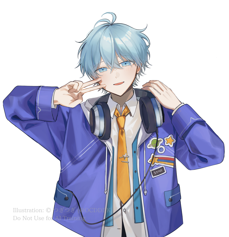 服の上をヘッドホンの有線が横切っているの